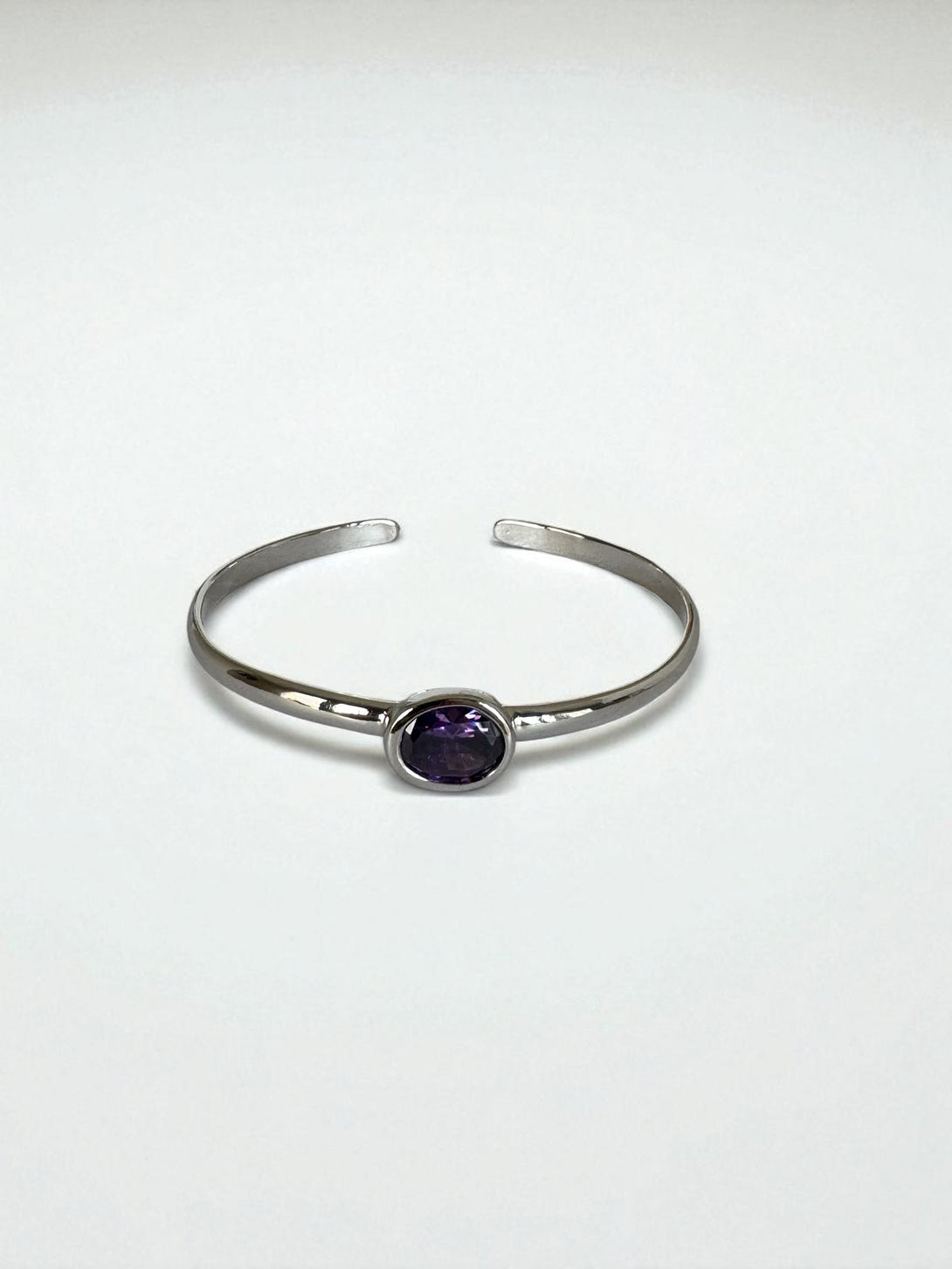 Sutil, eterno, esencial. Con una piedra morada y baño de rodio.