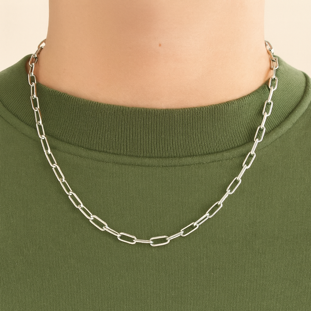 La Cadena Esencia, con su diseño elegante y un acabado en baño de rodio, aporta calidez, sofisticación y armonía a cualquier look.