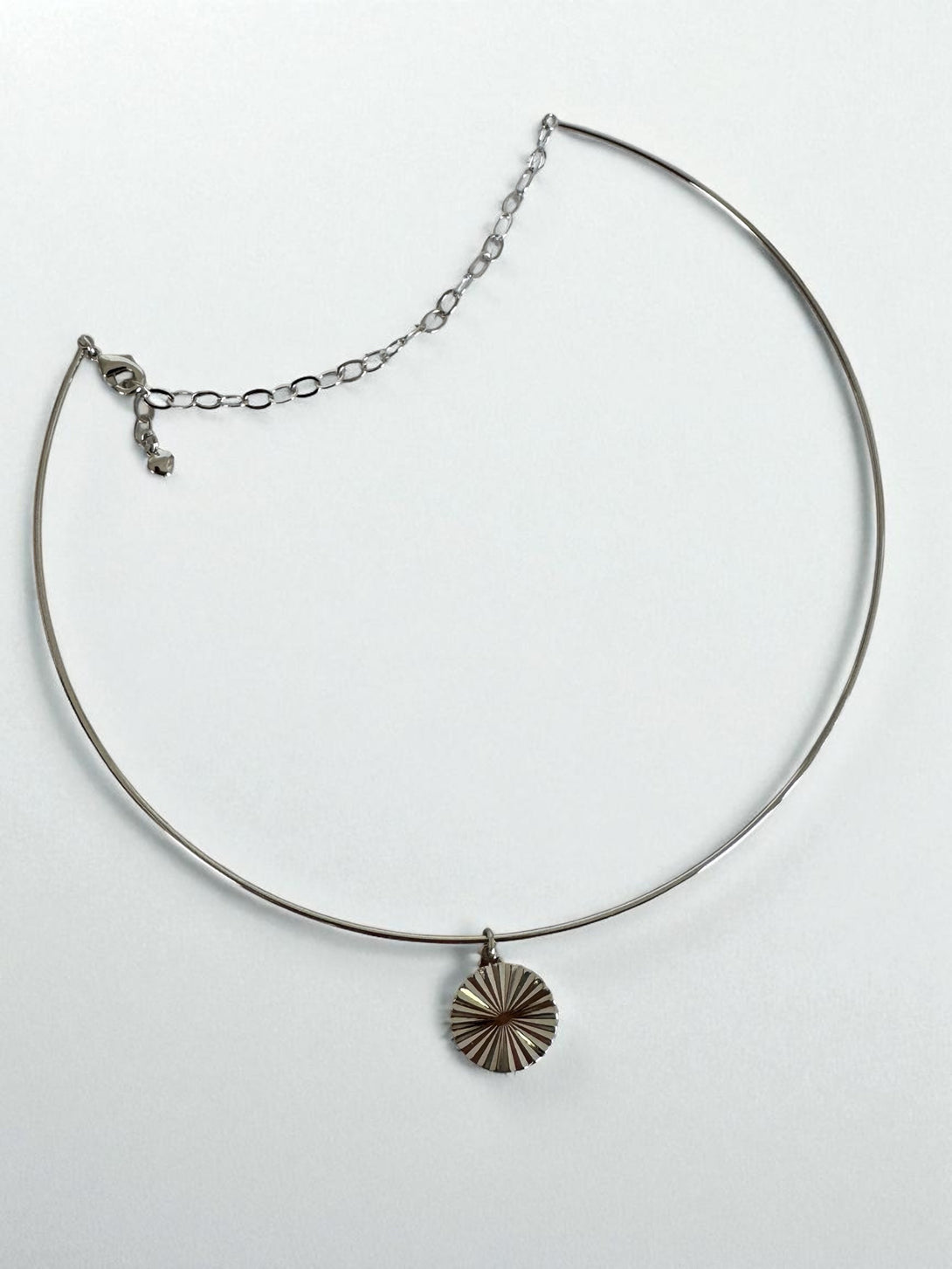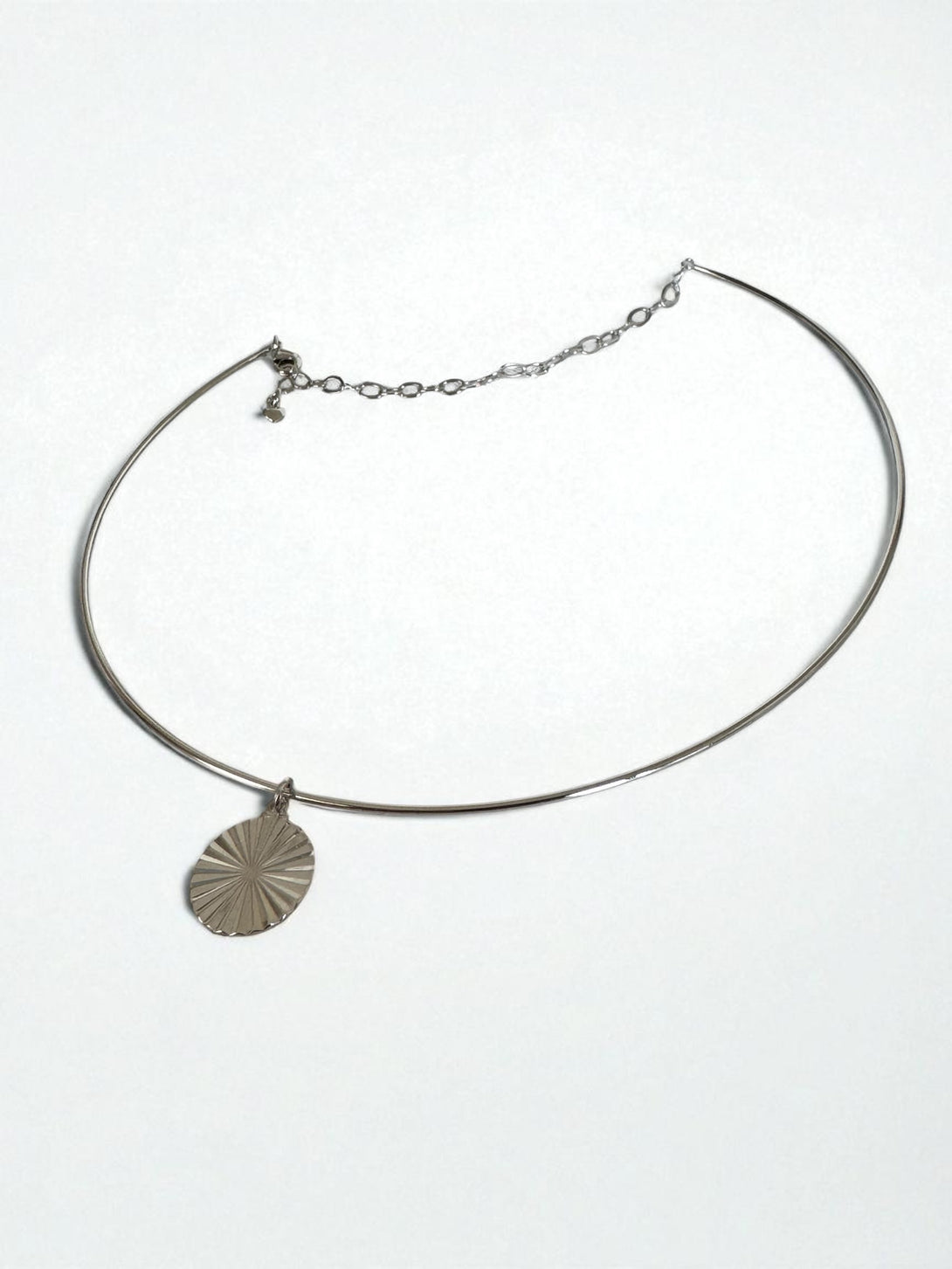 Collar rígido con colgante que resalta tu estilo sin esfuerzo. Bañado en rodio.