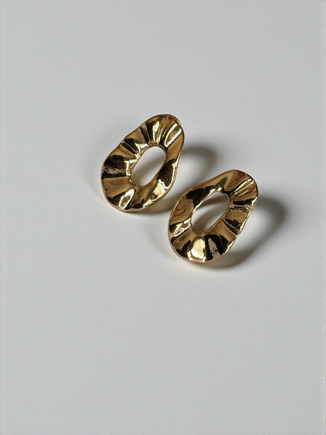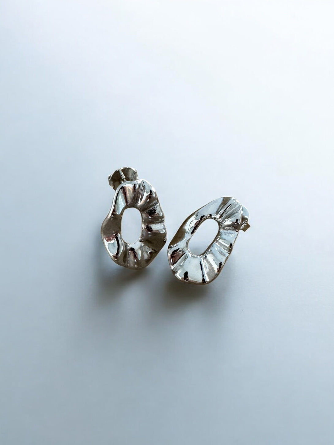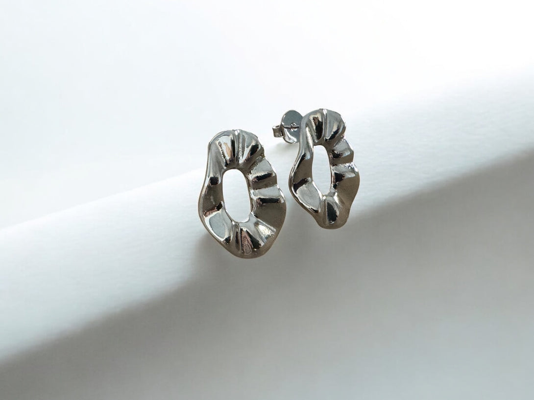 Pendientes con centro calado y contornos orgánicos, bañados en rodio y en oro para un brillo sutil, duradero y sofisticado en sus dos versiones.