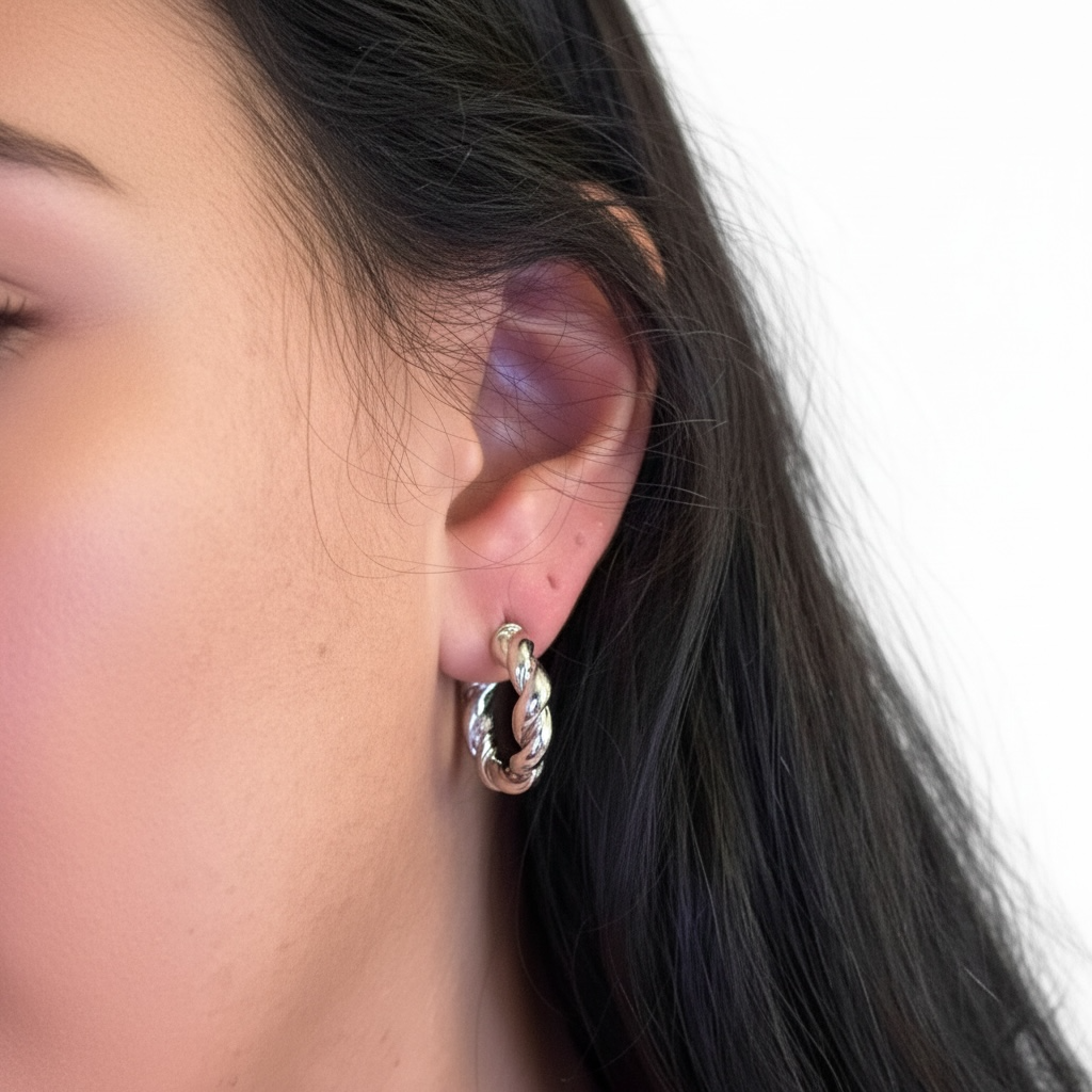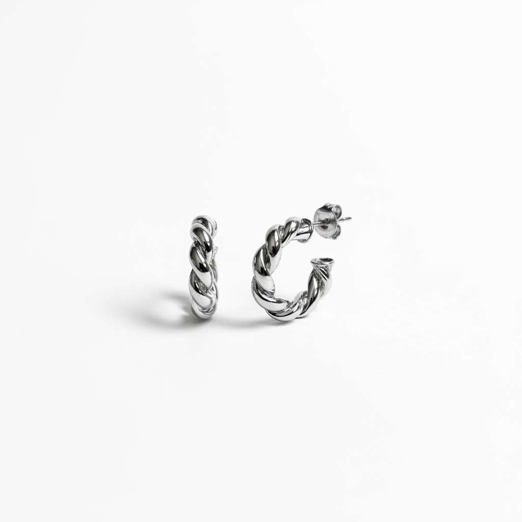 Descubre los pendientes que combinan brillo premium, diseño único y comodidad total. Su acabado en rodio les da un aspecto de joya fina —luminoso, moderno y súper elegante— mientras su diseño de cuerda aporta textura y un toque distintivo que no encontrarás en piezas comunes.