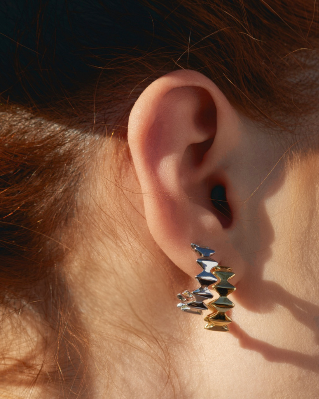 Unos pendientes que capturan la chispa de la luz y el dinamismo. Con baño de oro de 18kt.